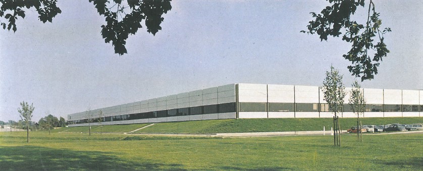 The first Havant IBM manufacturing building in Solent Road has long since disappeared, demolished to make way for Havant’s first ‘out of town’ Tesco store. The building which replaced it was the long, elegant structure shown above, designed by Arup Associates and winner of the prestigious Financial Times Award for Industrial Architecture in 1972.