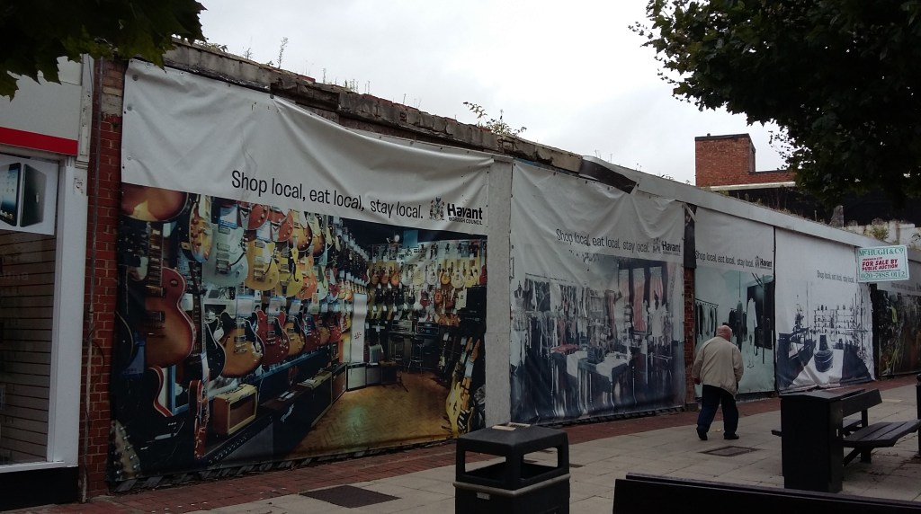 One of the town centre sites that has been an eyesore for a long time is the area of West St precinct opposite the Nat West bank that is covered with hoardings (nos 44-54). These hoardings have now been in place for over 12 years! Having failed to sell at auction the site has now sunk back down the Borough Council’s list of priorities. HCS thinks that, because of continuing neglect by the owners, the area should be converted from an eyesore into a small community garden with a footpath through to the bus station (an alternative to the gloomy brick corridor that is Trafalgar Walk). Would local residents be in favour of this idea? We would need public support to get HBC to make it happen, and some volunteers to help do the work, but it could be so much nicer than what’s there now! Havant town residents deserve a nicer environment – it’s long overdue.