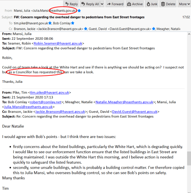 Does any of this matter? Well I think it does. I’ve been in contact with HBC this week on the subject of the dilapidated and dangerous state of some of the East Street buildings. So far, I’ve been really impressed by the interaction and feedback on proposed actions that I’ve been getting from the combined HBC/East Hants management team.