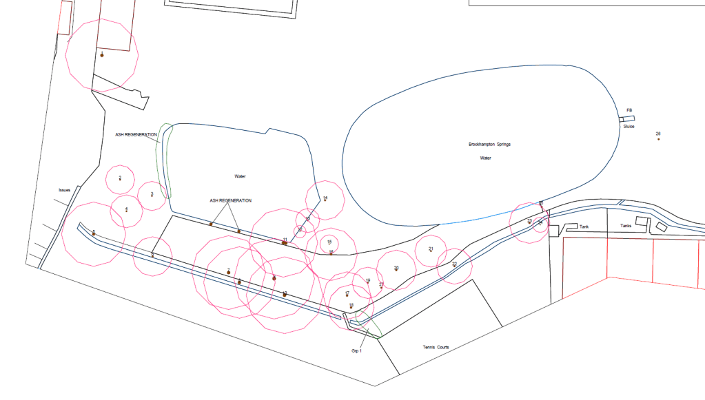 The current planning application details the works to be carried out on a number of trees around the Brockhampton Spring, behind the Portsmouth Water offices in West Street. The plan of works may be unreadable here, but if you click the image, the detailed plan will open and you can zoom in.