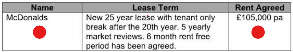It seems that even before they applied for planning permission for the container stack on the site, they had already agreed a new 25 year lease with McDonalds at a rental of £105,000 per year. With Costa, they’d already agreed a 15 year lease at £78,000 a year. At the same time, they’ve offered both companies a 6 month rent free period as an incentive.