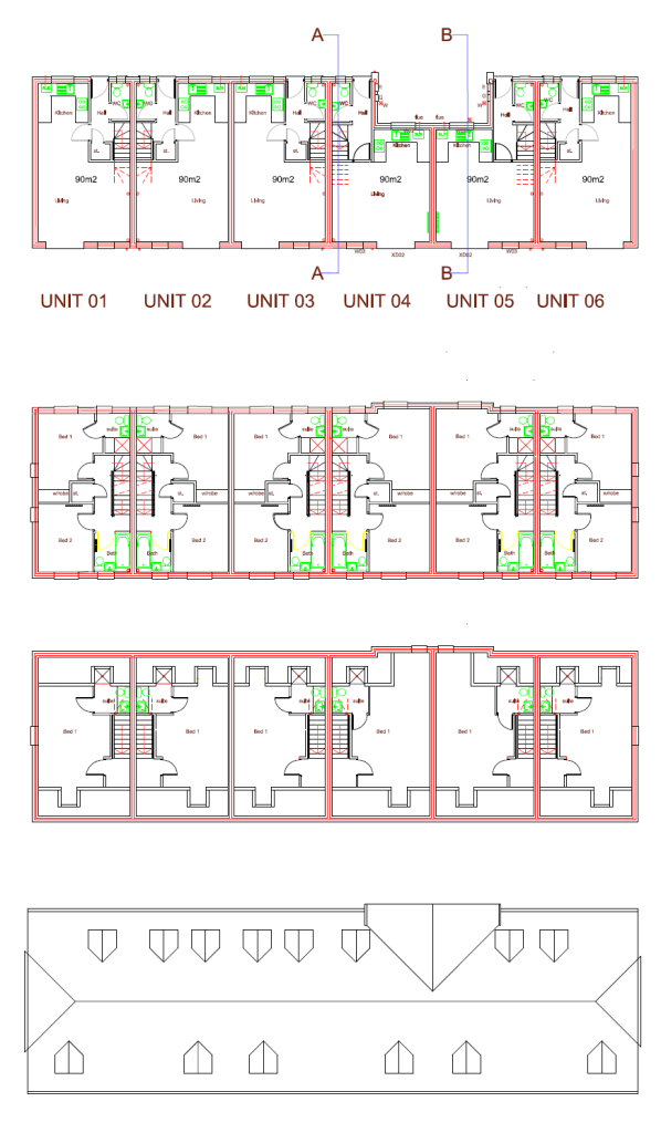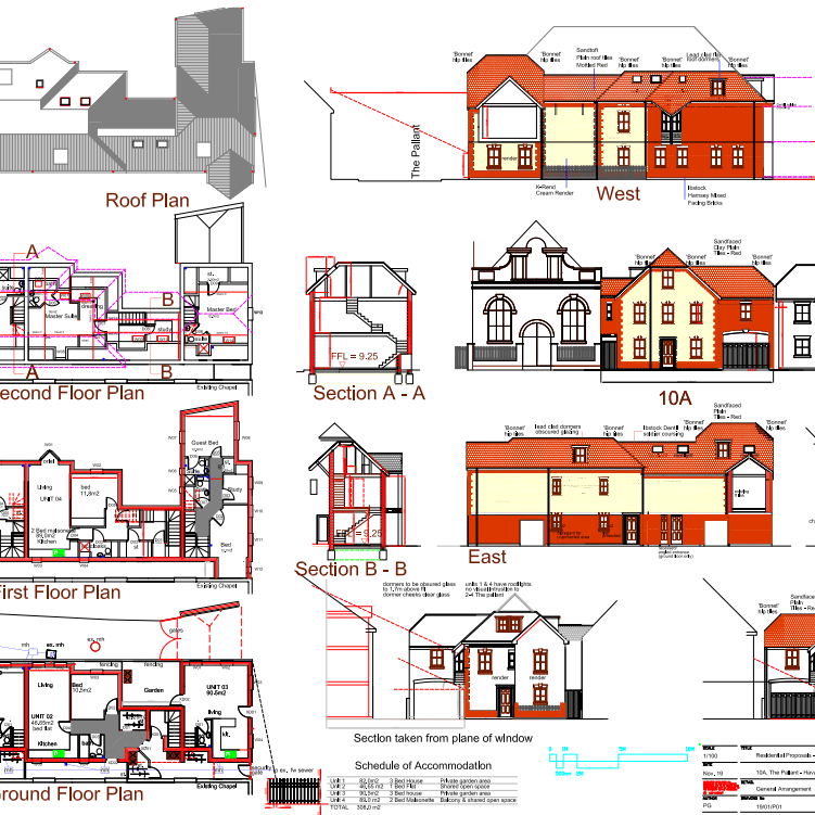 The ten flats are spread across four floors, with associated support offices, visitor accommodation and shared social areas. Click on the floor plans to zoom in to the detail.