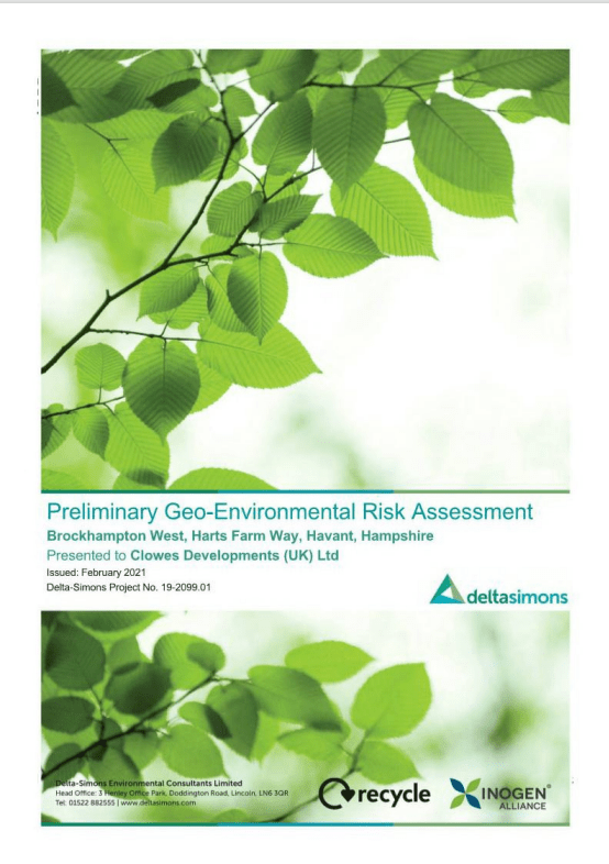 The ‘Preliminary Geo-Environmental Risk Assessment’ is a good place to start if you’re concerned about what’s beneath the surface on that former landfill site. (It’s got a lovely ‘green’ cover and since this staff writer is a sucker for beech leaves it was the obvious place to start.) Click the image to open the document.