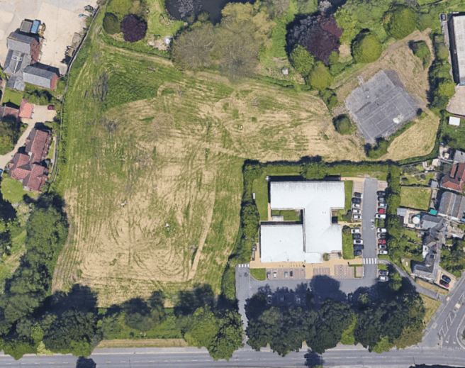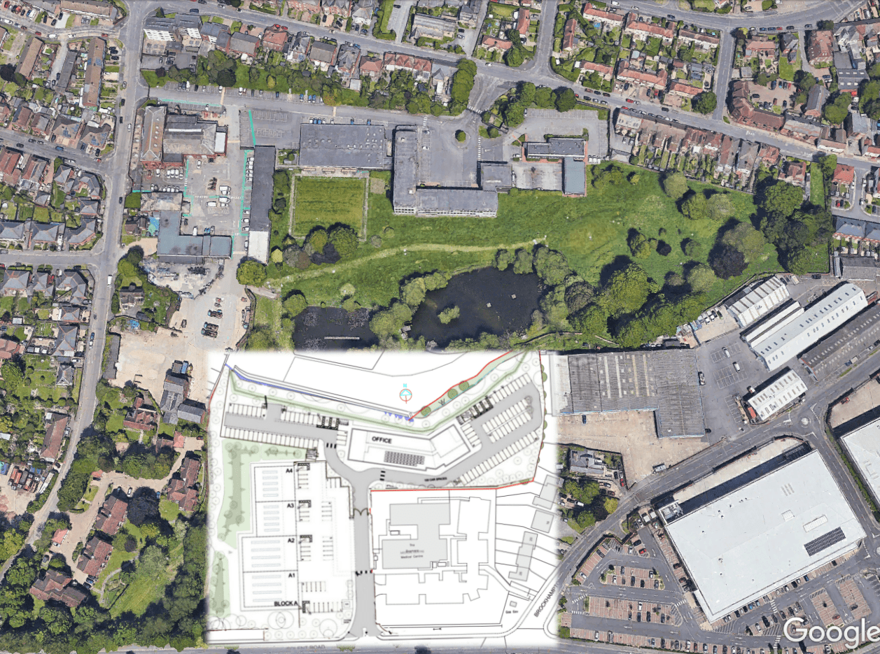 The slideshow below contains four images. The first, from Google Earth, shows the site as it is today, with the Bosmere Medical Practice visible at the bottom of the frame in the centre. The second image is from the latest Portsmouth Water planning application which is in pre-planning and expected for consultation imminently. The third image shows the application for a new site entrance on Brockhampton Road for which detailed plans submitted in March 2021 show is designed to be usable by ‘large, four axle tipper trucks’.