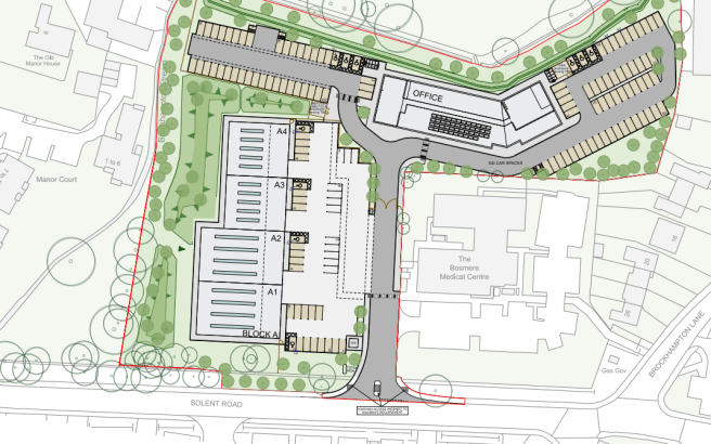 Now just imagine concreting over large parts of that space to build a new office block and a large car park to the north of the surgery, together with a large area of industrial buildings and hard standing towards Manor Court in the west. All that surface water is going to have to go somewhere and we suspect that the insurance premiums on the Bosmere Medical Centre and the Manor Court homes will just take another hike.