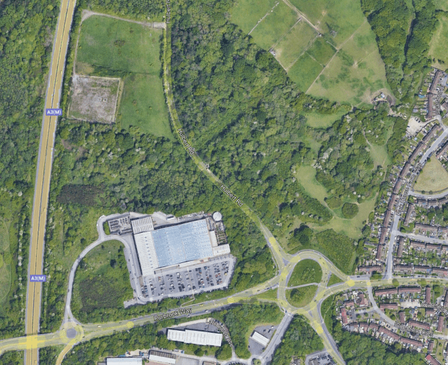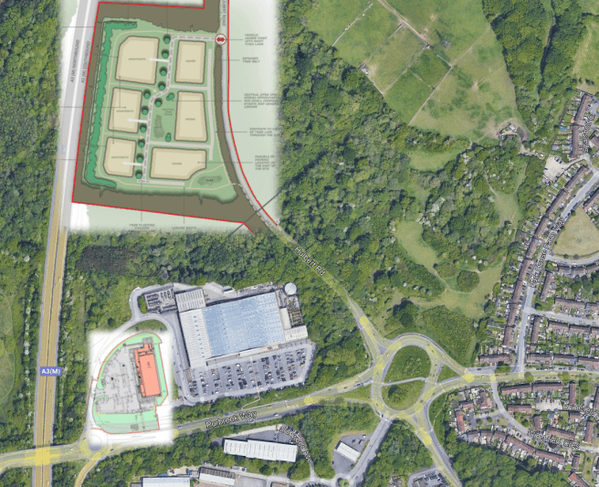 In the graphic below, the six areas of housing comprise three lots of apartments alongside the A3(M) and three lots of housing alongside the Hulbert Road with some token new trees and a play area. Also shown in the graphic is the site of the proposed Lidl store with its parking for 132 cars, nestling between B&Q and ‘the B&Q roundabout’. Again, a fair amount of that traffic will be passing through the Asda roundabout, adding to the fun and games there. The Lidl Store planning application can be found here.