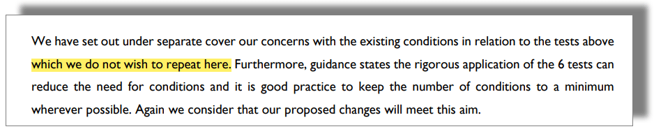 However, the changes they wish to make to conditions 4, 9 and 10 are far from being just ‘disappointing’, they are far reaching and unacceptable. We discuss these in this post and explain why the Council must reject them.
