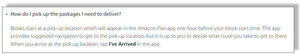 As it says in the Amazon Flex instruction below, they’ll announce the location of the parked van an hour before the local delivery drivers need to pick their ‘blocks’ up.