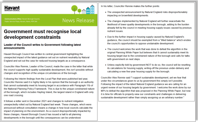 The Leadership team at Havant Borough Council have been on the receiving end of letters in the News this week, in response to the flood of HBC press releases that have recently been outbound from their Communications team.