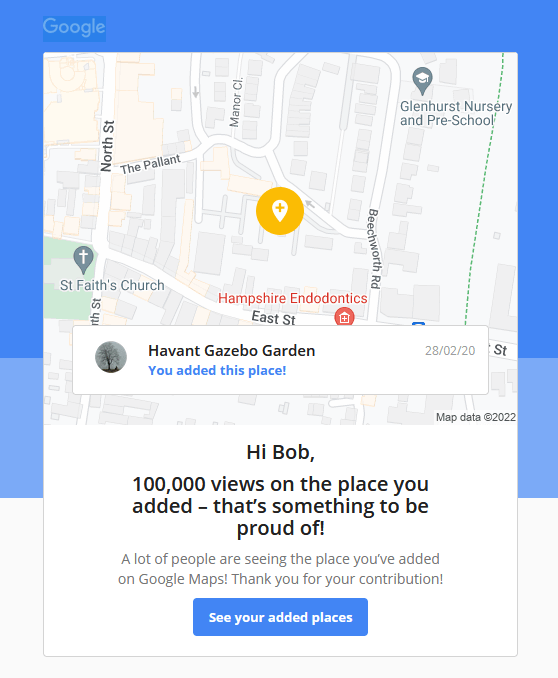 According to Google, there have been 100,000 views of the Havant Gazebo Garden on Google Maps since HCS added it as a ‘place’ to visit in Havant back in February, 2020. That’s round about 130 people a day, assuming you believe what you read on the internet.