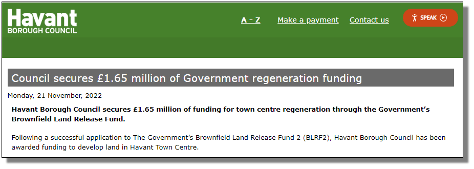 Yesterday, an excited announcement from HBC trumpeted their successful bid to secure £1.65m from the Government’s Brownfield Land Release Fund (BRLF).
