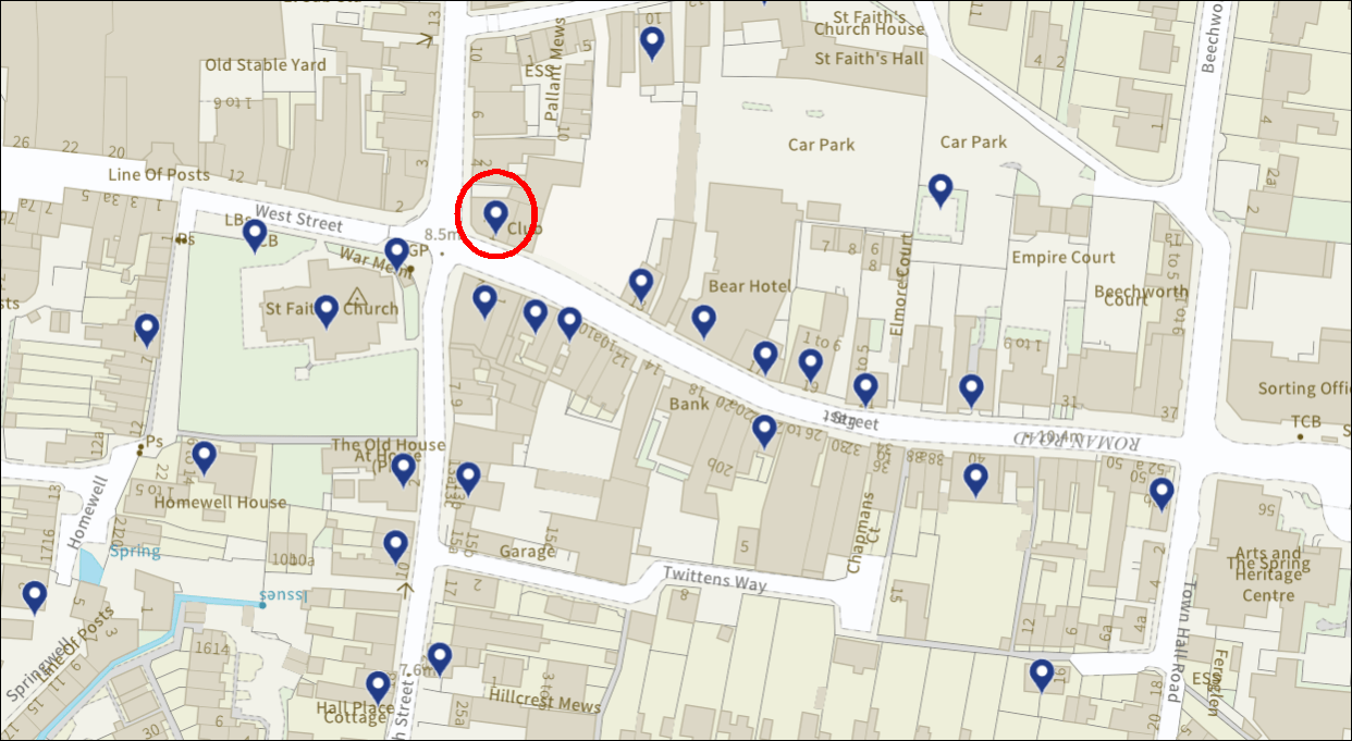 The map below shows the listed building within the vicinity of the White Hart (ringed in red). Click the image to open the details of the listing from the Historic England website.