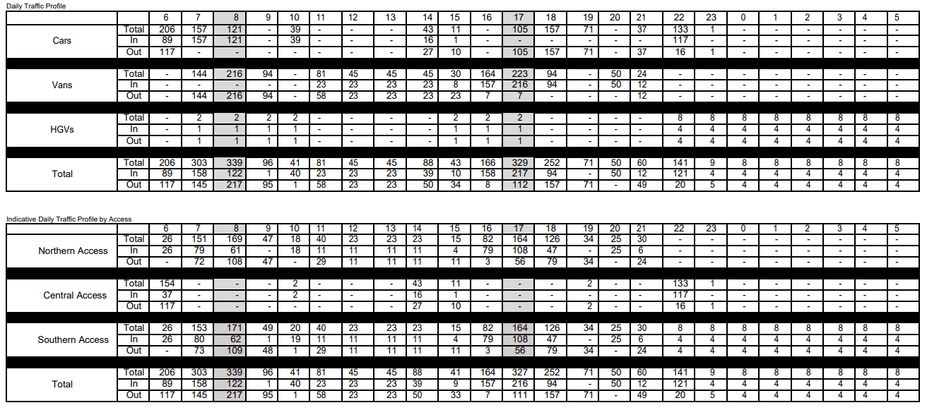 The total number of vehicle movements in the document attributed to cars comprises only those belonging to warehouse shift workers and delivery van drivers arriving for and departing from their shifts. The underlying data has previously been demonstrated to be incomplete, with traffic movements associated with the late night shift handover movement missing from the data. Of even greater significance, nowhere in the document or its data is there any reference to the significant number of privately owned Amazon ‘Flex’ vehicle movements.