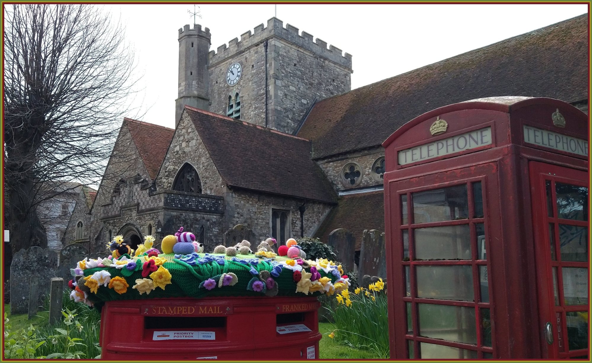 This lovely display by Havant’s own urban yarn bombers and guerilla knitters has to be one of the leading contenders for Canon Tom’s Easter Bonnet award.
