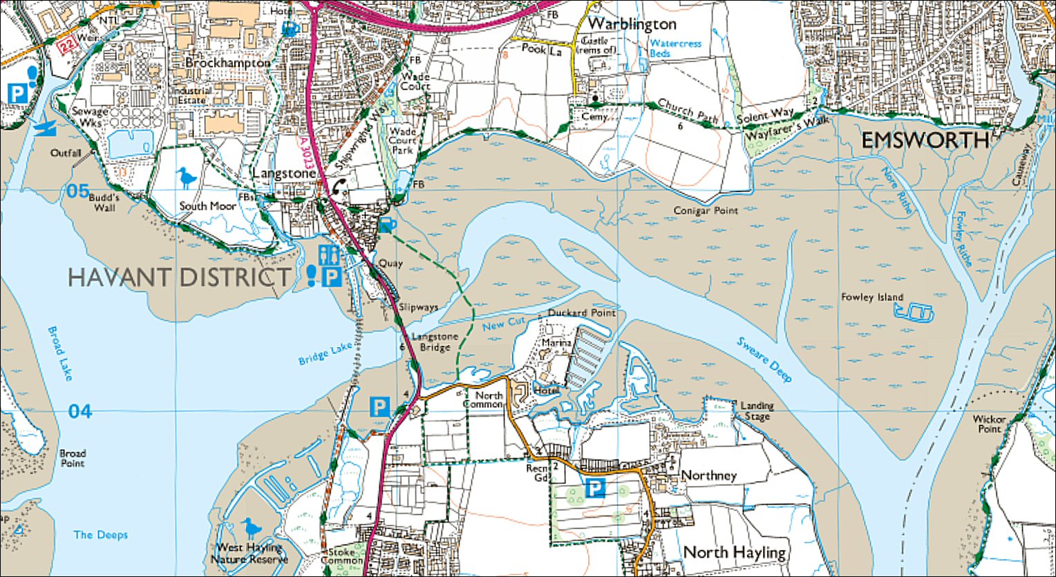 For the purpose of discussion, let’s consider the channel between the two harbours, from Bridge Lake in the west, through New Cut to Sweare Deep in the east, forming a blended body of water bounded by the foreshores at Langstone, Warblington and Hayling Island, all within the administrative responsibility of Havant Borough Council.