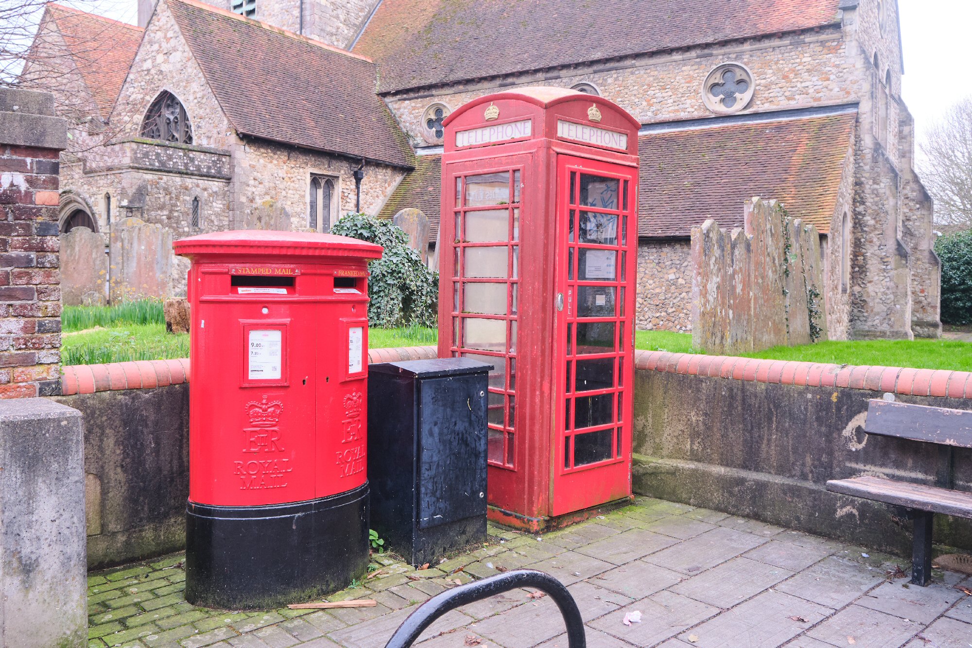 A listing category may also apply to street furniture, such as telephone boxes, lampposts and other artefacts. The telephone box beside St Faith’s church is grade II listed and a few years ago, I believe that the Havant Civic Society committee negotiated with the Post Office to have the broken door replaced. I think that the post box next to it is rather special too. Looking back at the black and white image here from the original 2007 Heritage Trail leaflet, it seems that at one point there were two separate pillar boxes, perhaps a ‘father and daughter’ pair following the death of King George VI and after the coronation of Queen Elizabeth II.