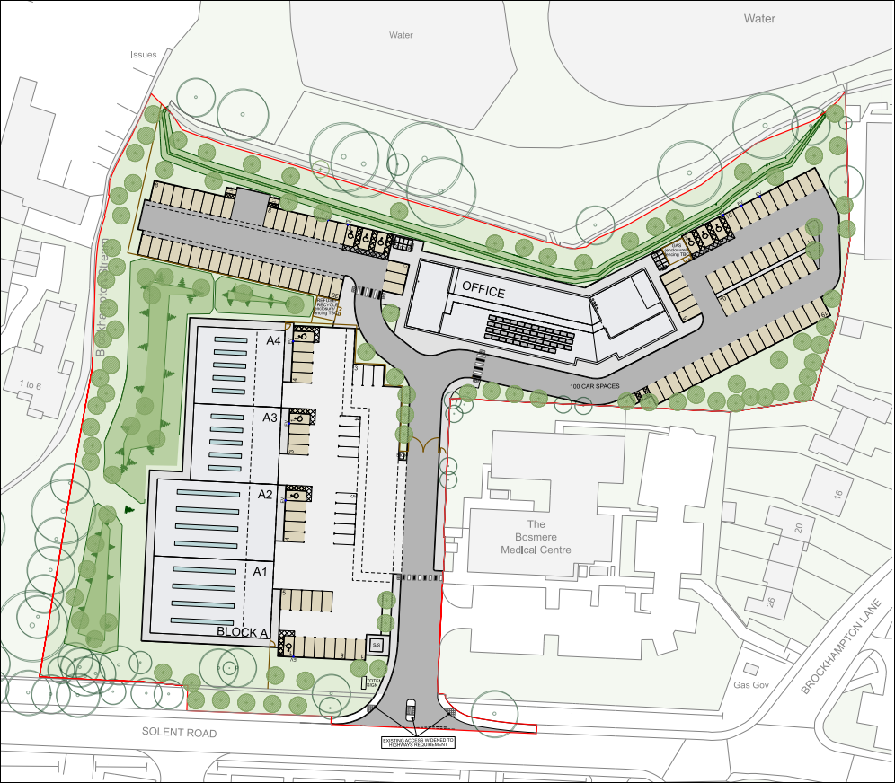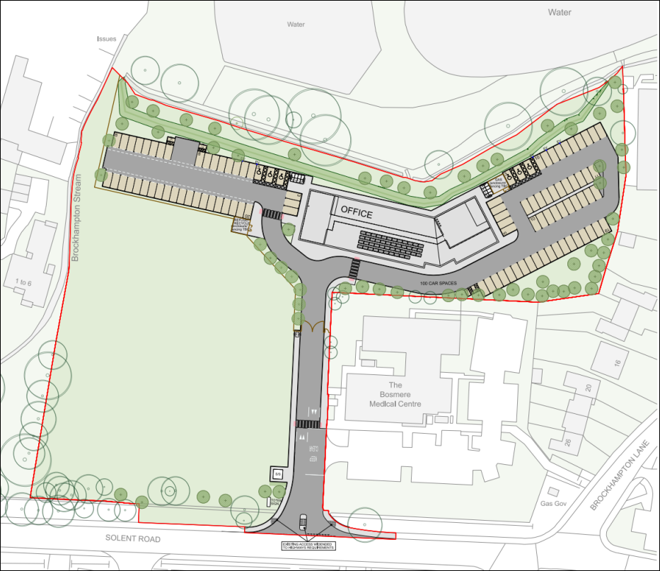 The original planning application was submitted in partnership with Chancerygate, whose commercial incentive was the development of industrial / warehouse units sited to the west of the Bosmere Medical Centre. In the face of significant public opposition, the planning application was resubmitted in July 2023 by Portsmouth Water, apparently dropping the industrial units and focussing instead solely on the development of the new Portsmouth Water HQ office building.