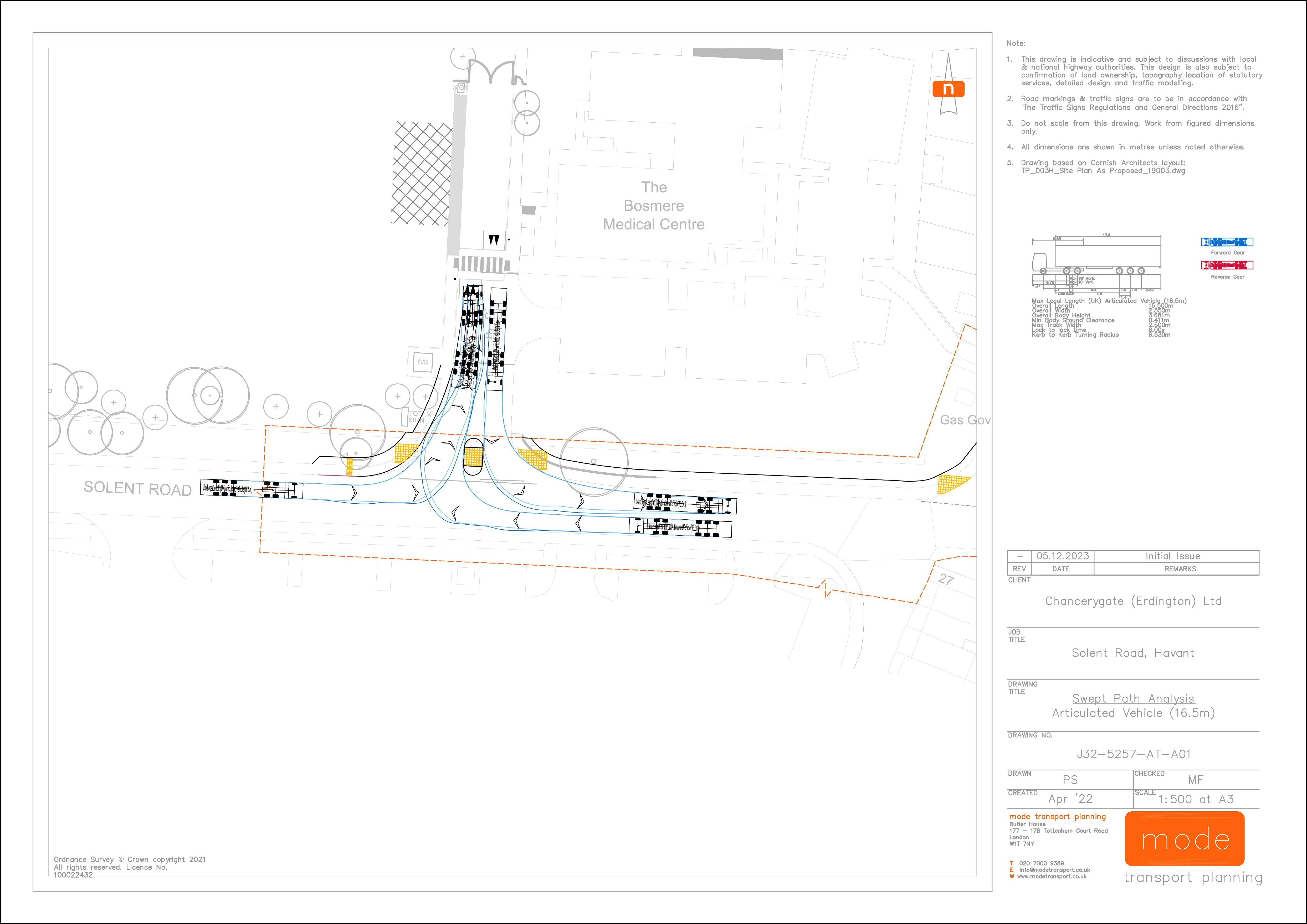 The next images show detail from these two newly published drawings which clearly shows the Portsmouth Water / Chancerygate intention of enabling access to the maximum legal length articulated vehicle allowed on UK roads. This is hardly appropriate traffic for a simple office block development.