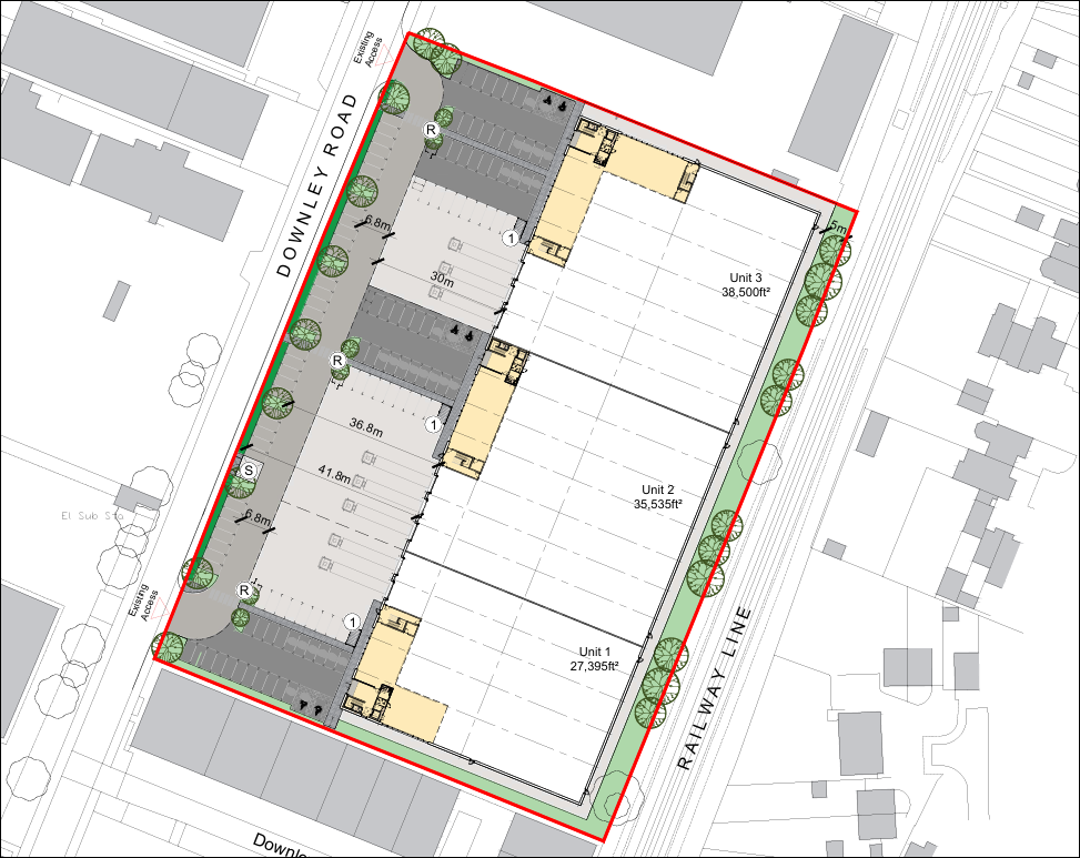 The proposal will clear the site and develop three new units with a total of eight HGV loading bays. The old manufacturing site was approved for class B2: General Industrial Use, while the new units are clearly designed for use as class B8: Storage and Distribution. The difference between B2 and B8 is relevant to the profile of traffic generation.