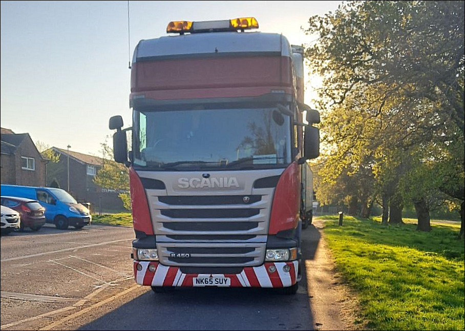 Many ‘linehaul’ HGVs are now using town centre streets as lorry parks, often overnight and sometimes all day long. That same stretch of shared pavement/cycleway in Crossland Drive is regarded as a convenient spot. One vehicle has even been spotted parked all day at the old Bulbeck Road car park site, though if you look closely, you’ll see that they found a parking ticket on their windscreen.