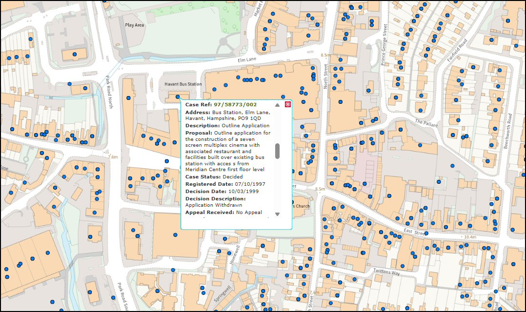 Now here is a genuinely useful function. For a long time, we’ve wondered why Havant Borough Council doesn’t use the ‘Map search’ function in the planning system’s iDox planning portal. Many other local authorities, including Portsmouth City Council, have implemented it.