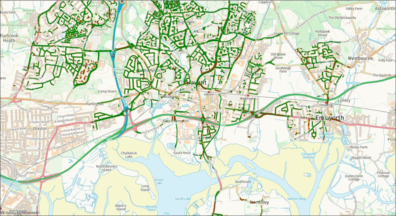 While looking for the exact ward boundaries recently, I was surprised to come across a useful, but unpublicised, web service from Havant Borough Council. The post which follows gives a few examples of the views which can be constructed using the HBC implementation of Astun Technology’s iShare service. Scroll on down and you’ll be taken through a few examples of the type of data maps you can construct. Towards the end of the post, you’ll find out how to access the service.