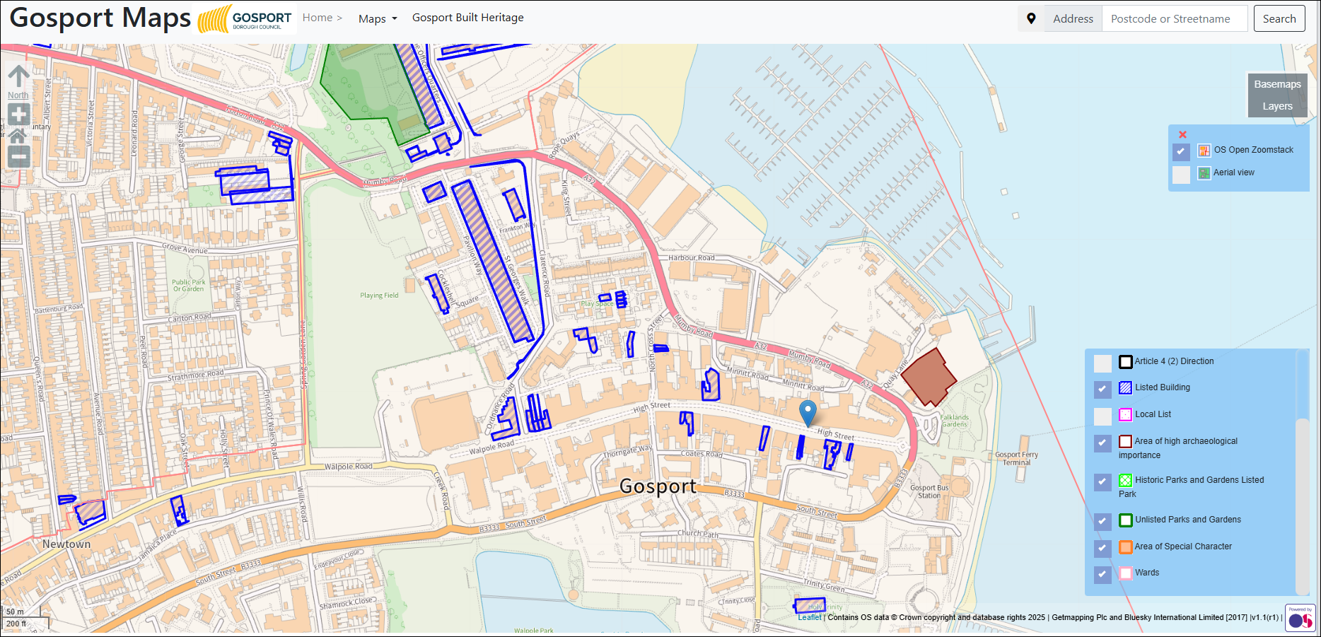Gosport has a similar offering but from a different GIS service provider, suggesting this is a function licenced by the borough and district councils rather than by Hampshire County. The Gosport service has clearly been influenced by that borough’s leadership in Heritage Open Day offerings, as you can see from the example below.