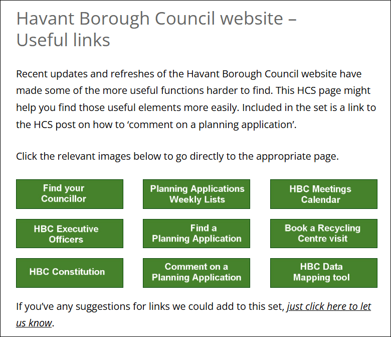 Whether or not this public service survives Havant’s upcoming absorption into a Greater Portsmouth unitary authority remains to be seen. Given a few improvements to data currency and frequency of update, it has significant potential as a public portal into the local authority and the area and, as such, it is something that HCS would like to see continued.