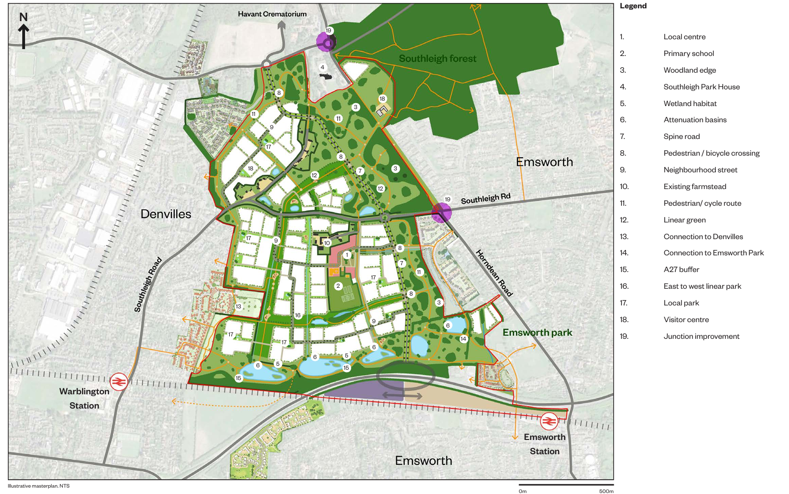 Before you visit the Bloor Southleigh events – see previous post – you may want to familiarise yourself with the masterplan produced for Havant Borough Council in 2017.