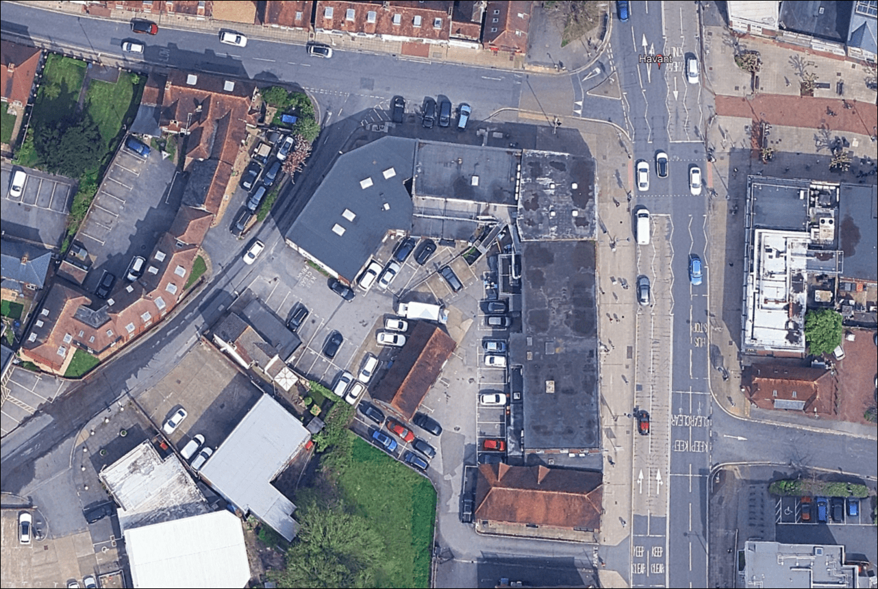 However, while the ‘approximately 48 parking spaces’ can be seen in the aerial view above, they’re all currently allocated to staff from the various retail units which form the ground floor of the buildings, and used by the pizza delivery collection point at the back of Domino’s.