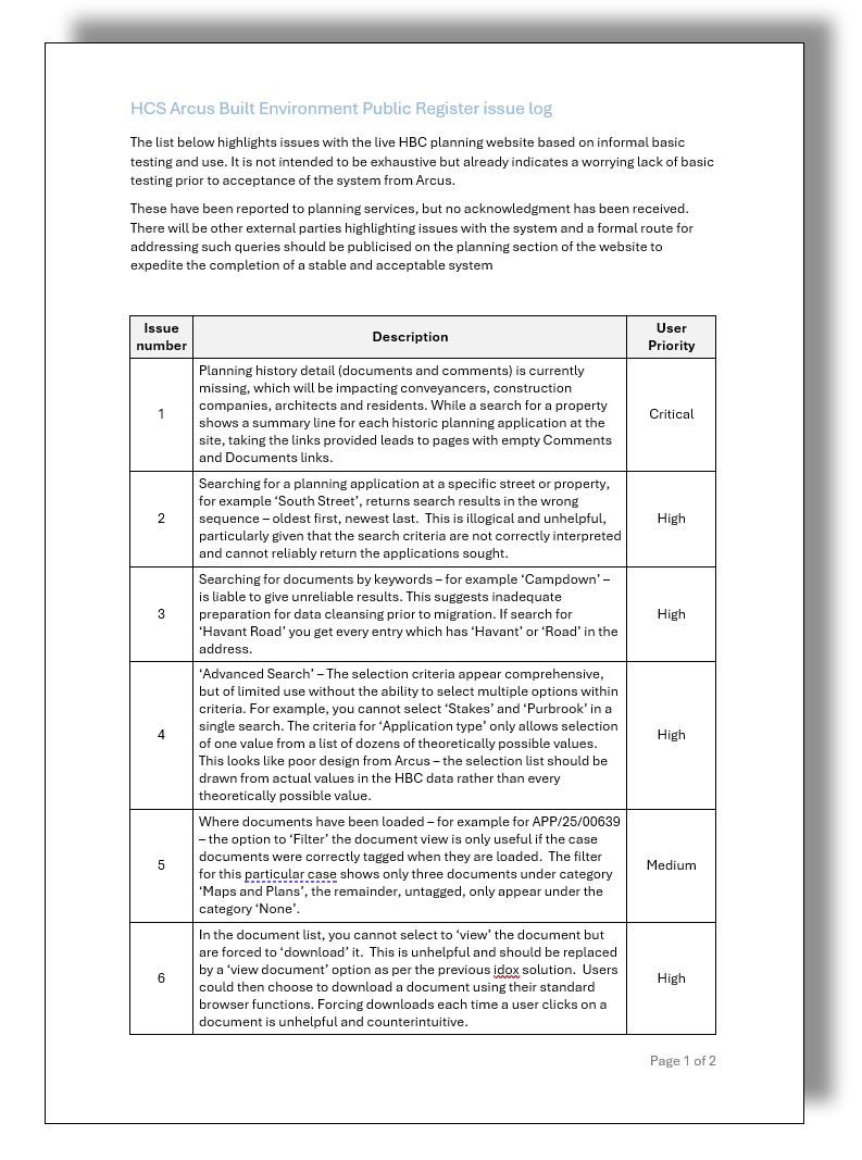 If our understanding is correct, these fundamental errors are likely to prove both costly and time-consuming to fix. The urgency cannot be overstated – access to historical planning records is essential for the council to fulfil its statutory duties in planning, enforcement, and land charges.