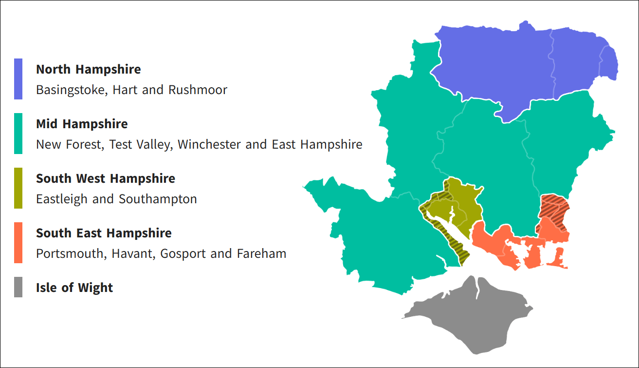 - South East Hampshire: Portsmouth, Havant, Gosport and Fareham